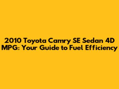 Hey guys! Are you curious about the 2010 Toyota Camry SE Sedan 4D MPG? Well, you've come to the right place! This guide will dive into everything you need to know about the fuel efficiency of this popular sedan. We'll cover its MPG ratings, factors that can affect its fuel economy, and even some tips to help you maximize your gas mileage. So, buckle up and let's get started!