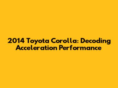 2014 Toyota Corolla: Decoding Acceleration Performance