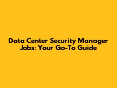 Data Center Security Manager Jobs: A Comprehensive Guide