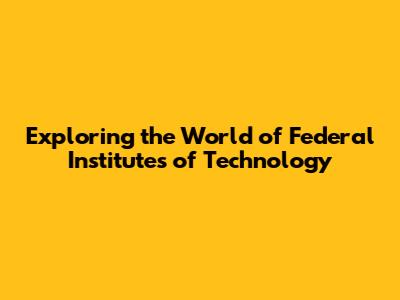 Exploring The World Of Federal Institutes Of Technology