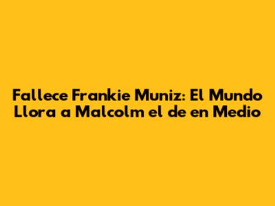 Fallece Frankie Muniz: El Mundo Llora A 'Malcolm El De En Medio'