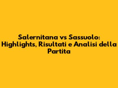 Facciamo un riepilogo della partita tra Salernitana e Sassuolo, ripercorrendo i momenti chiave, i risultati e le prestazioni dei giocatori. Analizzeremo i gol, le azioni salienti, le tattiche utilizzate e le reazioni dei protagonisti. Ogni dettaglio sarà riassunto, per farvi rivivere le emozioni del campo e per celebrare la passione per il calcio. Siete pronti a rivivere i momenti più importanti?