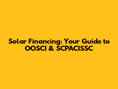 Solar Financing: Your Guide To OOSCI & SCPACISSC