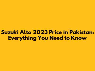 Suzuki Alto 2023 Price In Pakistan: A Complete Guide