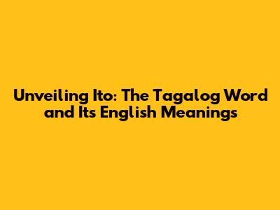Unveiling 'Ito': The Tagalog Word And Its English Meanings