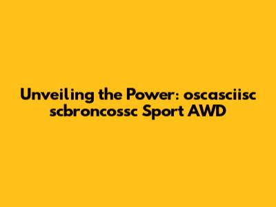 Unveiling The Power: Oscasciisc Scbroncossc Sport AWD